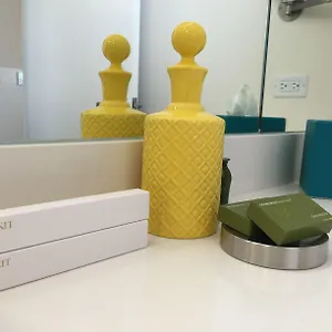 Providing a hair dryer and toiletries, the private bathrooms are also equipped with a tub. Some units have views of the courtyard.