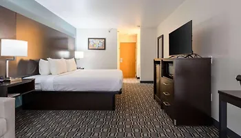 Situated about 10 minutes by car from Standin' on the Corner Public Park and 2.4 km from the First Street Pathway Park, the quality Clarion Pointe Winslow I-40 hotel features a banquet hall for various purposes. Located in a downtown neighbourhood, the 2-star pet-friendly hotel offers 72 rooms with pool views and a heated indoor swimming pool.